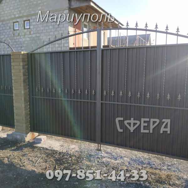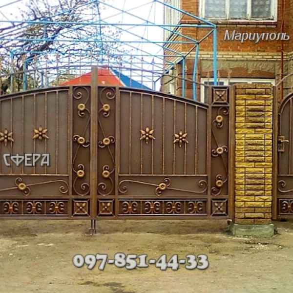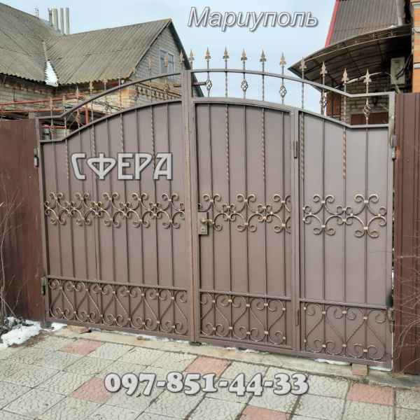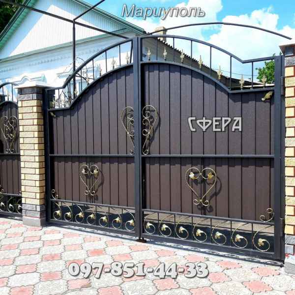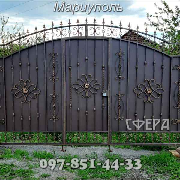 СФЕРА Металлоизделий предлагает огромный выбор типов распашных ворот начиная от обычных сварных и заканчивая эксклюзивными коваными воротами ручной работы. Наши мастера изготовят ворота, исходя из Ваших пожеланий, подберут обшивку полотна ворот под дизайн Вашего дома. Распашные ворота обладают оптимальным соотношением стоимости и качества и могут быть определены практически на каждом объекте. Для изготовления створок может использоваться разнообразный материал: металлический профнастил с полимерным покрытием самого разного цвета, популярные ныне сэндвич - панели, кованные, филенчатые, глухие, решетчатые. Распашные ворота могут быть с калиткой, что значительно упрощает эксплуатацию ворот данного типа. Распашные ворота с автоматикой - современный вариант классического решения. Вы можете управлять распашными воротами, не выходя из машины, с помощью пульта дистанционного управления.