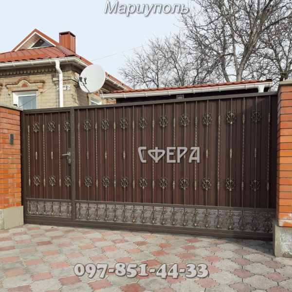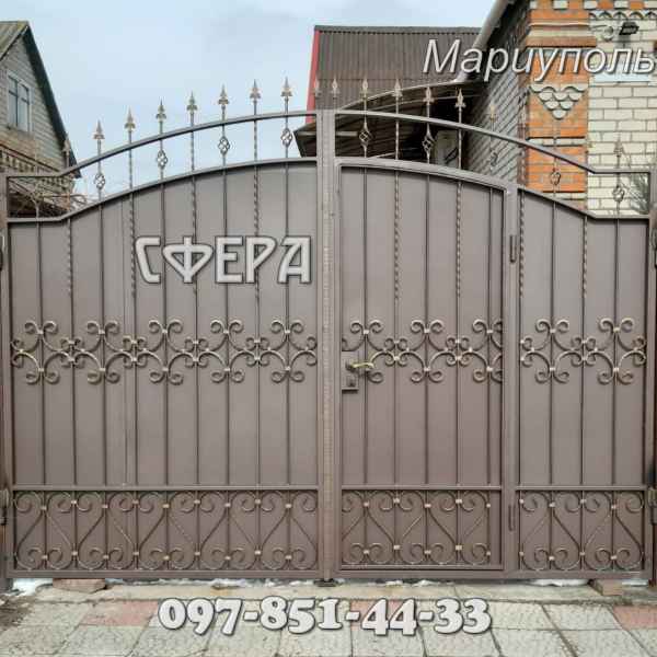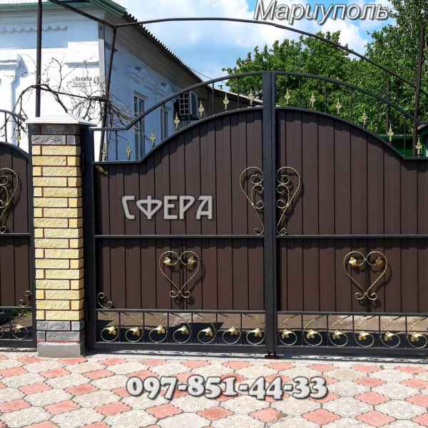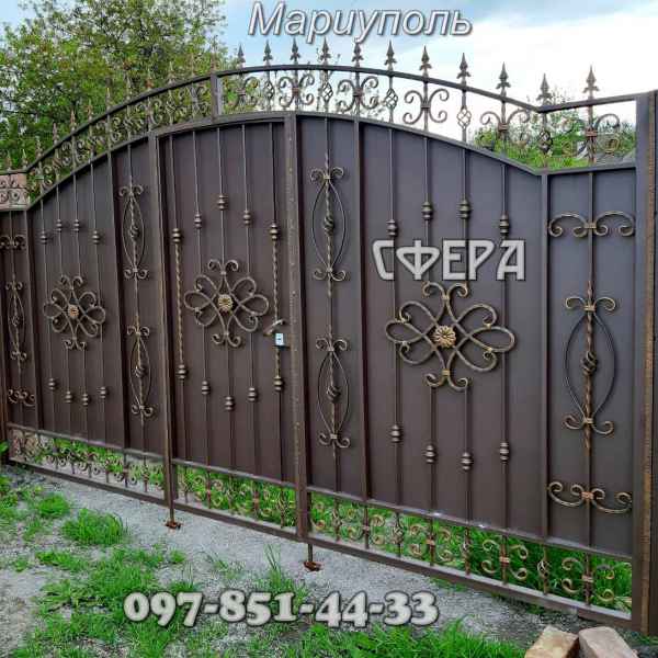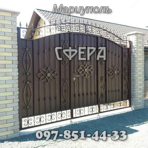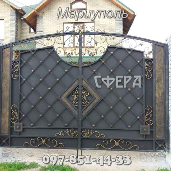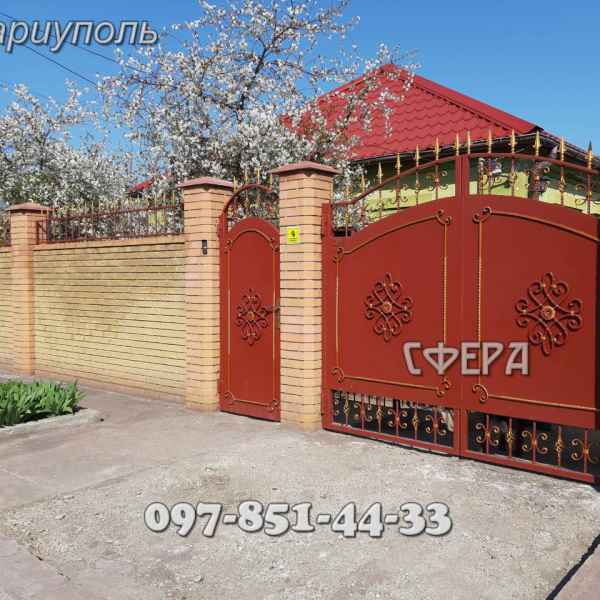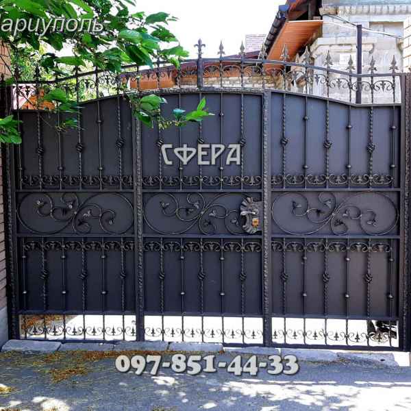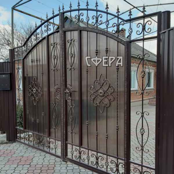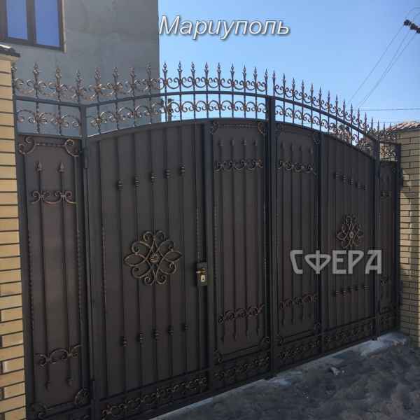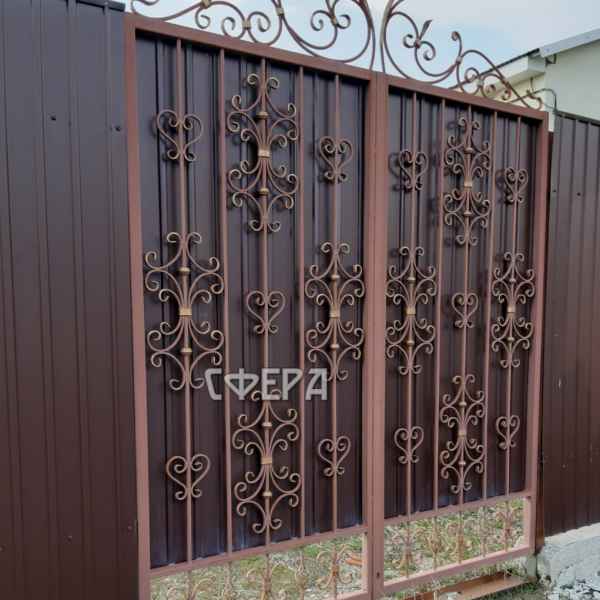 СФЕРА Металлоизделий предлагает огромный выбор типов распашных ворот начиная от обычных сварных и заканчивая эксклюзивными коваными воротами ручной работы. Наши мастера изготовят ворота, исходя из Ваших пожеланий, подберут обшивку полотна ворот под дизайн Вашего дома. Распашные ворота обладают оптимальным соотношением стоимости и качества и могут быть определены практически на каждом объекте. Для изготовления створок может использоваться разнообразный материал: металлический профнастил с полимерным покрытием самого разного цвета, популярные ныне сэндвич - панели, кованные, филенчатые, глухие, решетчатые. Распашные ворота могут быть с калиткой, что значительно упрощает эксплуатацию ворот данного типа. Распашные ворота с автоматикой - современный вариант классического решения. Вы можете управлять распашными воротами, не выходя из машины, с помощью пульта дистанционного управления.